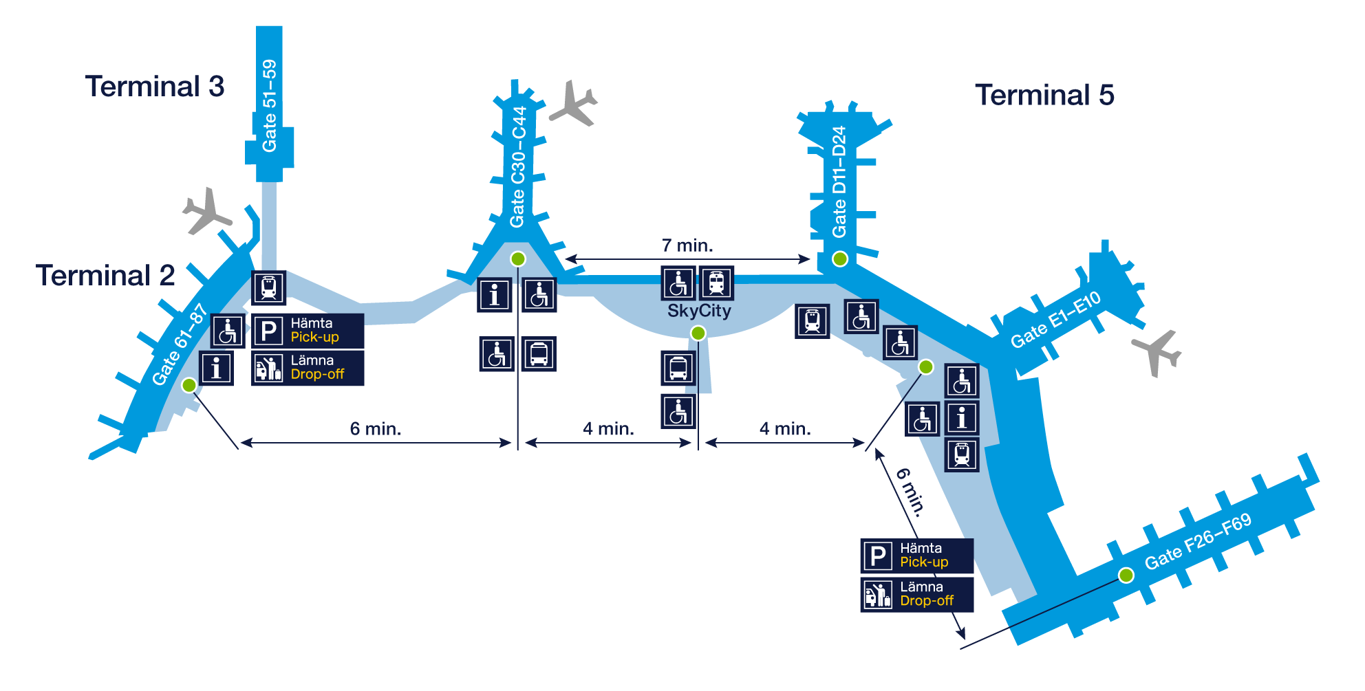 All of Swedavia’s airports also have assistive hearing loops at their information counters. It is a good idea to mention that you have impaired hearing when you book your flight. If you want, you can book assistance at the same time and in that way get help to and from the aircraft.